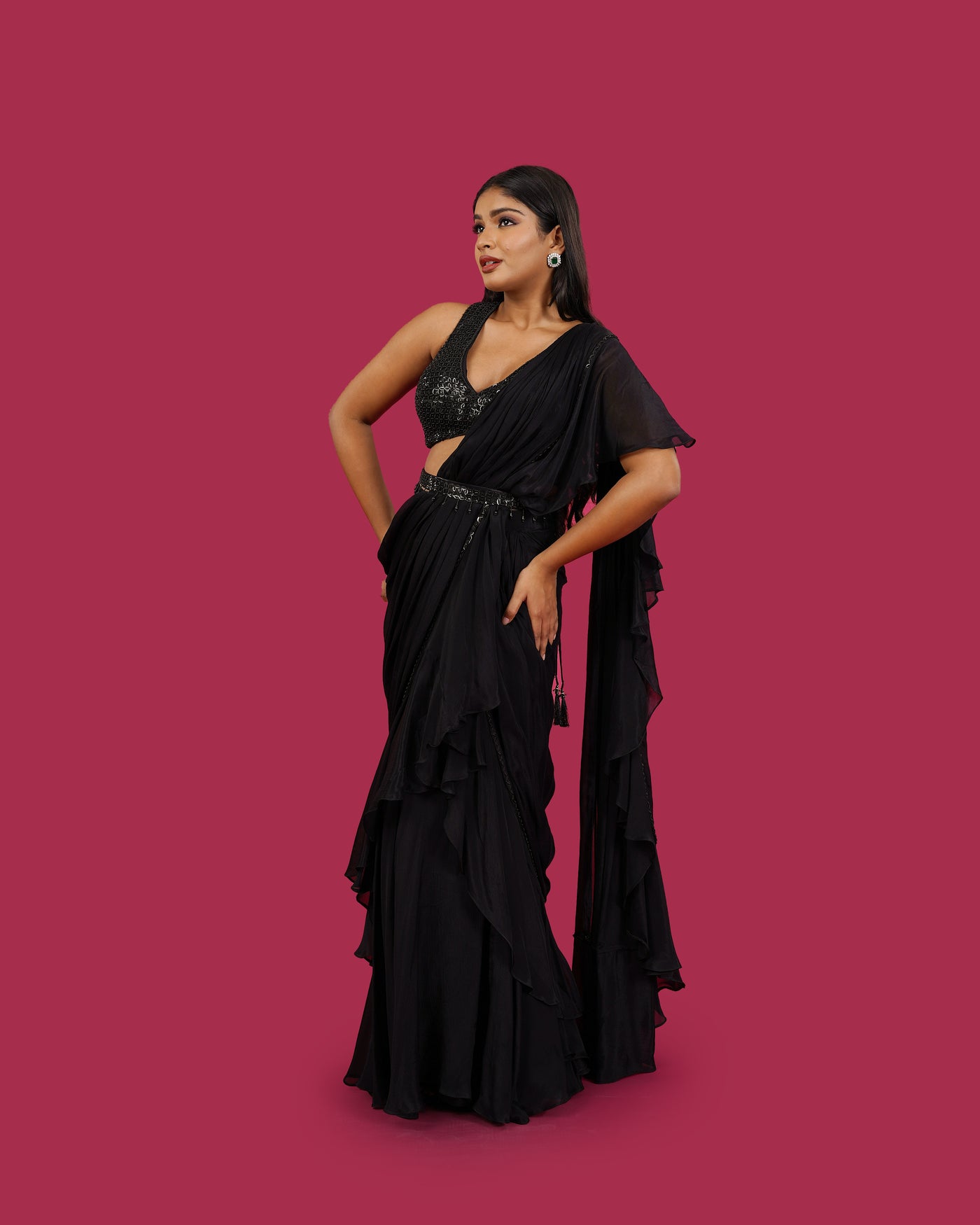 ✔ Keep away from perfume sprays, deodorants, and hairspray directly on the garment; chemicals may tarnish zari and stones.