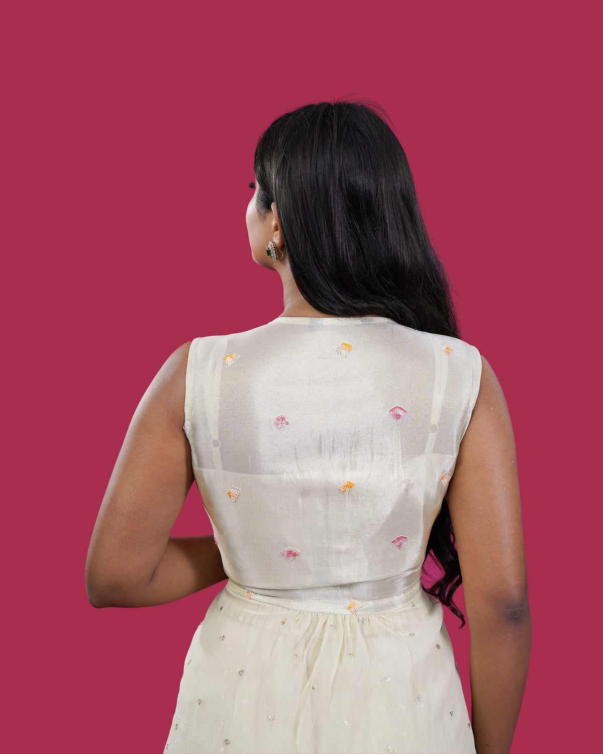 ✔ Keep away from perfume sprays, deodorants, and hairspray directly on the garment; chemicals may tarnish zari and stones.